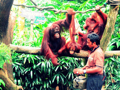 | Friendly Orangutans and their Caretaker, Singapore Zoo |