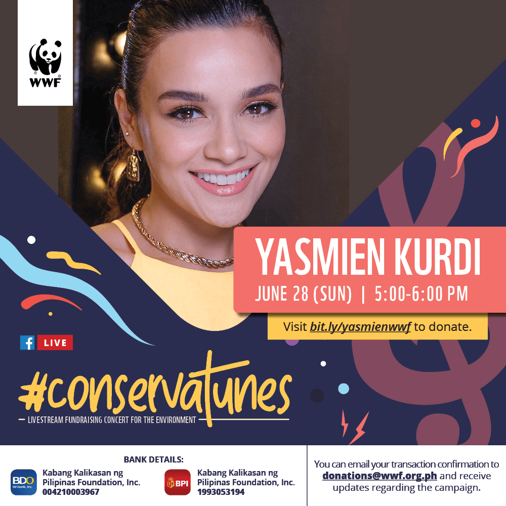 This effort of WWF-Philippines will continue to help the organization’s partner communities. Completing the #Conservatune series of June 2020 and also recognized as Philippine Environmental Month, are Sitti and Princess Velasco on June 27 and South Border and Yasmien Kurdi on June 28.