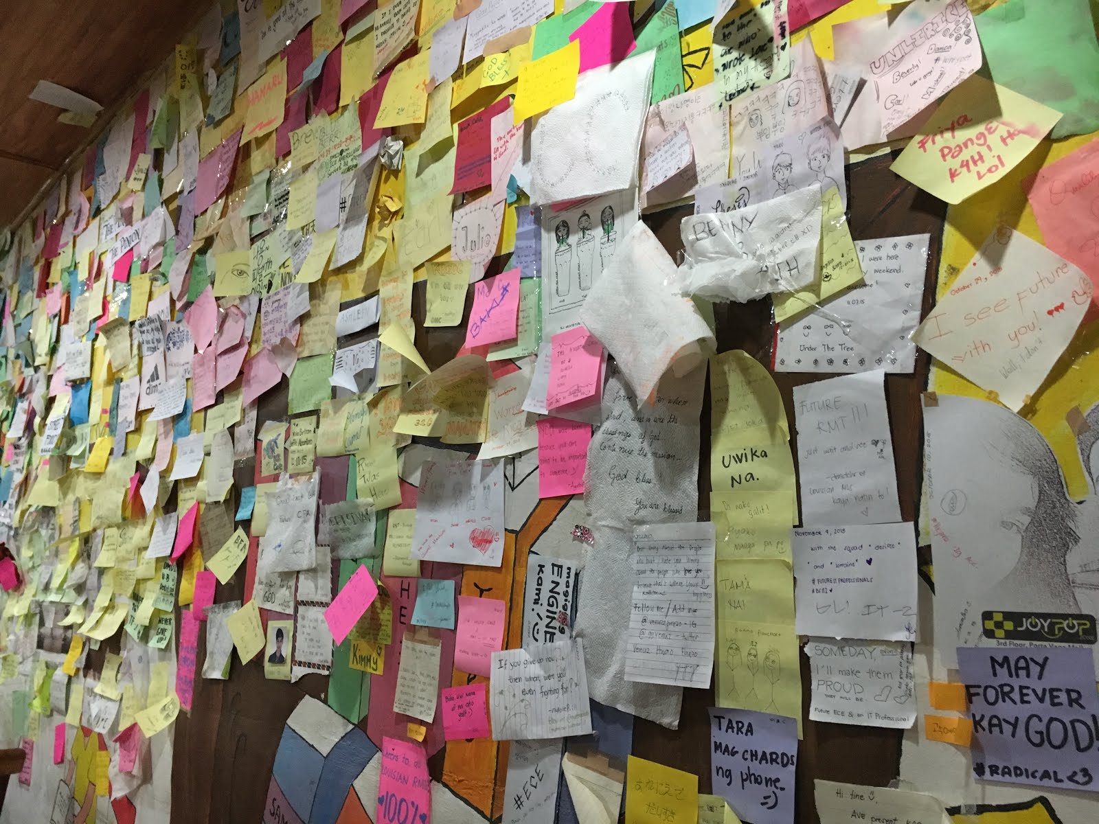 | Can you read some of the ‘Uwi ka na. Hindi na ako galit’ messages? Hahaha! Awesome wall! |